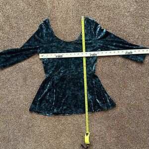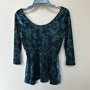 Decree Velvet Burnout Top Womens Med Peplum Goth Y2K Teal Blue Pullover