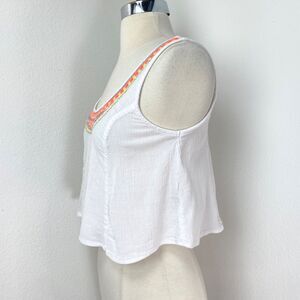 Decree White Cotton Tank Top Small Crop Cami Sequins Embroidered Festival Boho