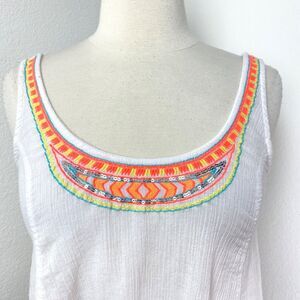 Decree White Cotton Tank Top Small Crop Cami Sequins Neon Embroidery ~ Festival Boho Whimsy Fairy Milk Maid Peasant