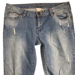 Decree Women Blue Denim Mid Wash Bootcut Distressed Ripped Jeans Size 11.