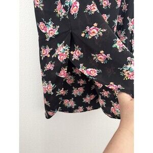 Decree Women's Black Floral Short Sleeve Chiffon Blouse Round Neck Size XL