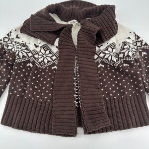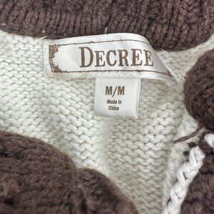 Decree Women's Brown White Fair Isle Knit Cardigan Sweater Shawl Cozy Size M
