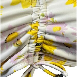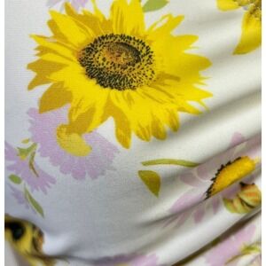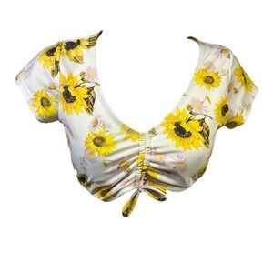 Decree Women's Crop Top V Neck Drawstring Front Sunflower Print