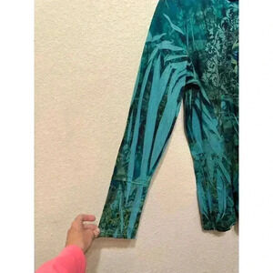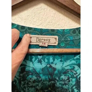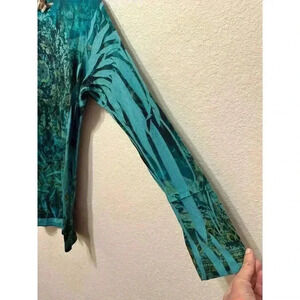 Decree Womens L Y2K Geometric Top Teal Tattoo Print Long Sleeve 2000s Grunge