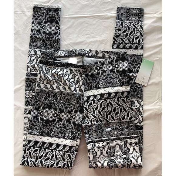 Up for sale is this pair of women's Decree leggings. Black& white, Paisley Park pattern. Size