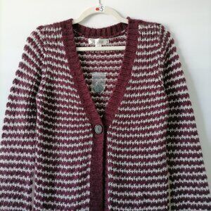 Decree Womens Maroon Red Long Sleeve Fringe Hem Striped Cardigan Sweater Size L