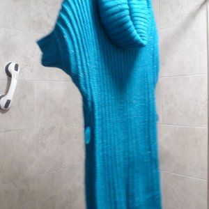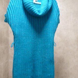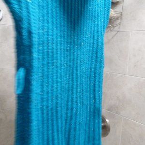 Decree Womens Knitted Blue/ metalic Short Sleeve- Kimono style Sweater Long tunic / Dress