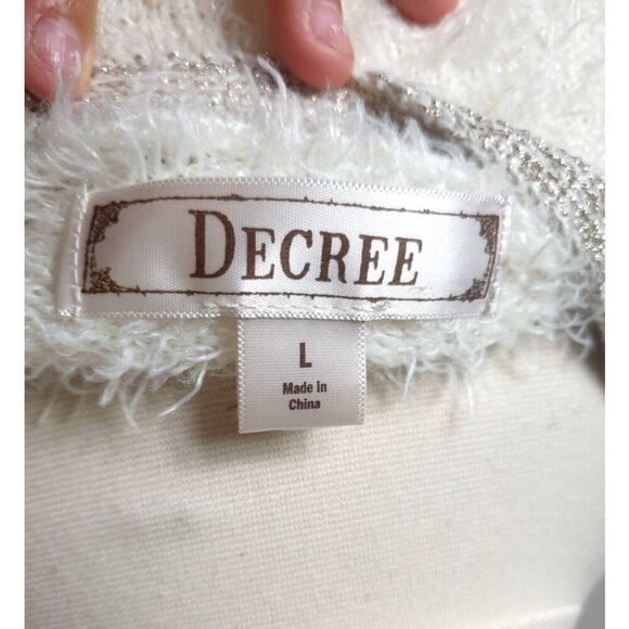 Decree Women's Cropped Sweater L Cream Gold Y2K Fuzzy Cardigan Button-Up