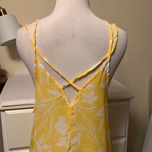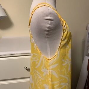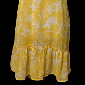 brand new with tags yellow and white swim cover up. This is a polyester piece with a strap a back and I really nice gauzy kind of feel to it. I love the ruffle at the bottom it makes for a really cute fit. The photos show the sizes of the small that I have, I also have this an extra large. The size for the extra large is 22 armpit to armpit and 30 total length.