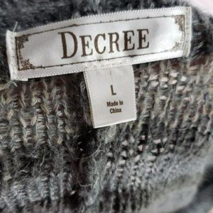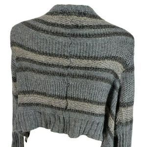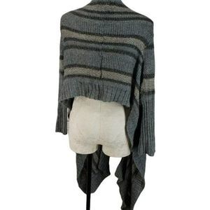 Decree Large Gray Tan Work striped kimono sweater wrap front cardigan