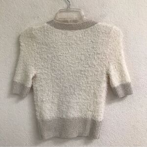Decree Y2K fuzzy crop short sleeve button front sweater M