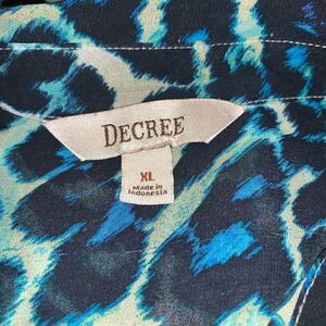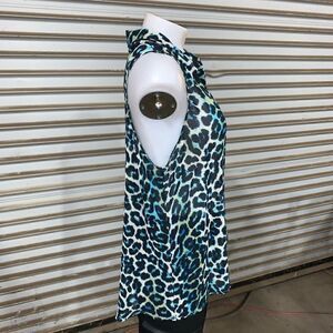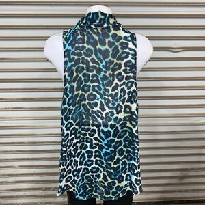 Decree sheer animal print sleeveless top button up front with collar Gently used see photos for more details Women’s size Large Unmarked clear T/B