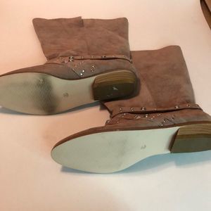 Leather boots with studs, Woman's Decree brand boots with stud straps. , They have never been worn despite the bottoms being dirty. taupe suede slouchy mid calf boots.