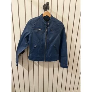 Decrum Genuine Leather Womens Blue Diamond Cafe Racer Jacket - XS