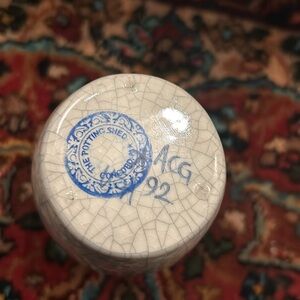 Signed vase from 1992. The Potting Shed. Crackle pottery. 7 inches tall. Clean with no chips or cracks.