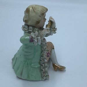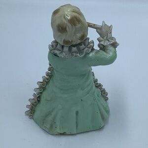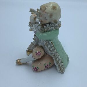 Beautiful Dee Bee Company hand painted boy playing flute figurine. Good used condition. It is difficult to tell but I think there are some chips on ruffles. I took close up photos.