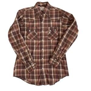 Dee Cee Western Shirt Pearl Snap Long Sleeve Plaid USA Mens Size 15.5 / 35