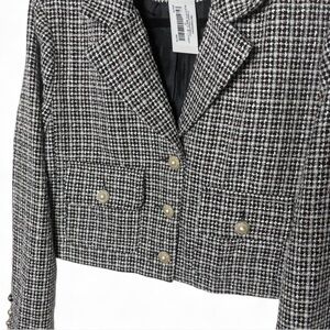 Dee Dee Cropped Tweed Blazer Jacket Black White Pink Pearl Buttons NWT