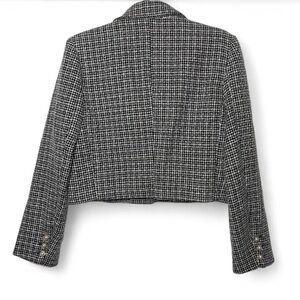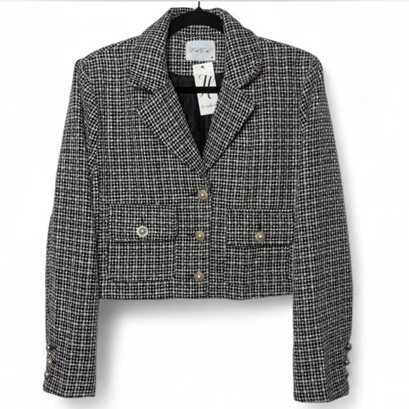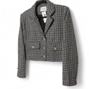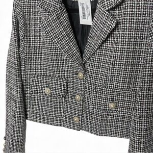 Dee Dee Cropped Tweed Blazer Jacket Black White Pink Pearl Buttons NWT