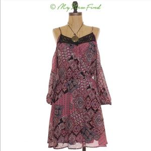 Dee Elle Boho Cold Shoulder Chiffon Black Dress