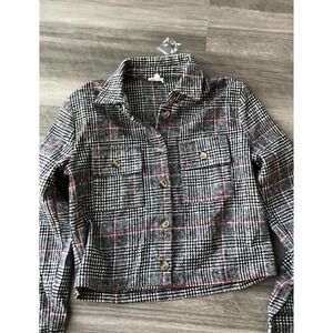 Dee Elle Plaid Jacket Wool S Boxy Coat Gray Black Red