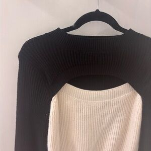 Elevate your wardrobe with this elegant black and white sweater. Perfect for any occasion, it combines style with comfort.