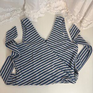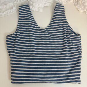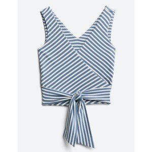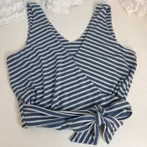 Dee Elly Blue & White Striped Wrap Crop Top Ribbed Sleeveless M