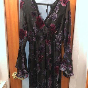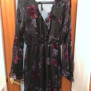 Dee Elly Burnout Velvet Bell Sleeve Dress. Cute longsleeve light dress with lace and velvet detailing on the dress! Worn once, in great condition! A bit big for me (I am usually size S).