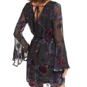 Dee Elly Burnout Velvet Bell Sleeve Dress