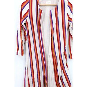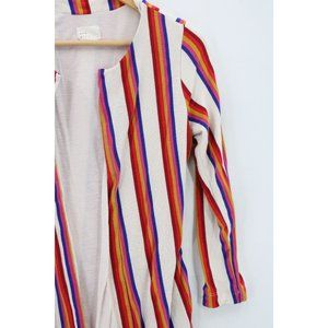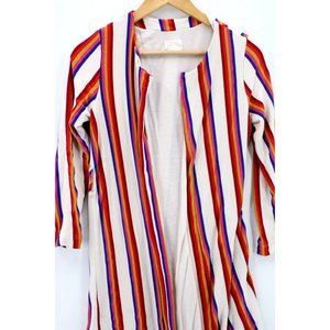 Dee Elly Cardigan Womens Multicolor Rainbow Striped Open Front Lined Size S