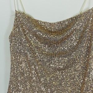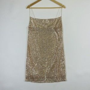 Dee Elly Champagne Beige Sequin Sleeveless Lined Dress Womens Sz Medium