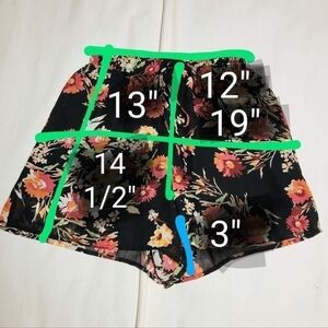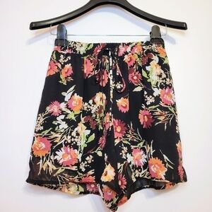 Dee Elly NWT floral print chiffon drawstring shorts in black and pink, size small.
