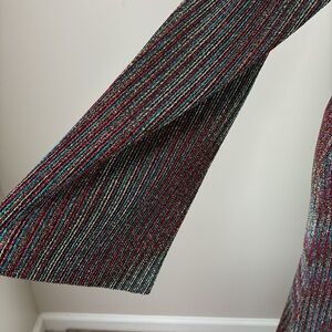 Dee Elly Metallic Stripe Cutout Back Long Bell Sleeve Maxi Dress Multicolor M