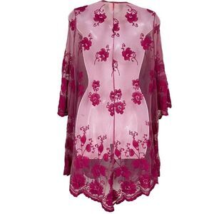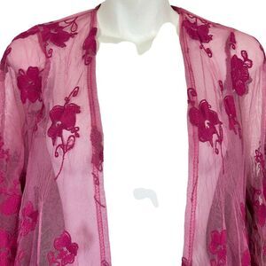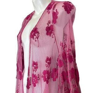 Dee Elly Pink Lace Embroidered Open Sheer Coverup Top Jacket Floral Fairy sz S