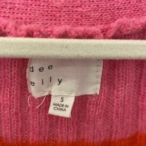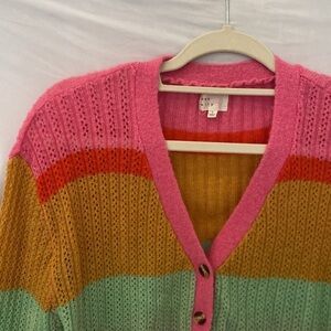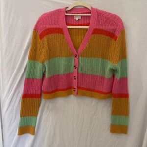 Dee Elly Pink green orange Knit Open Front button Cardigan small