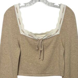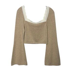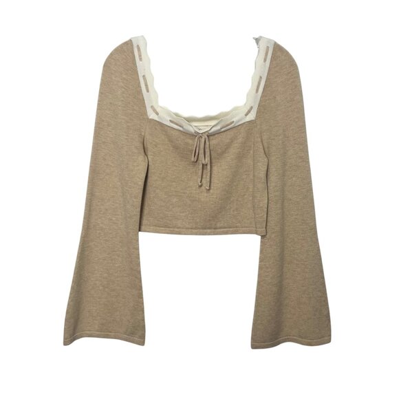 Dee Elly Sweater Cropped Womens Large Beige Bell Sleeve New WOT