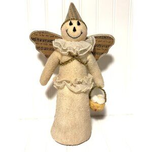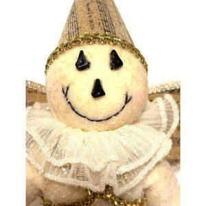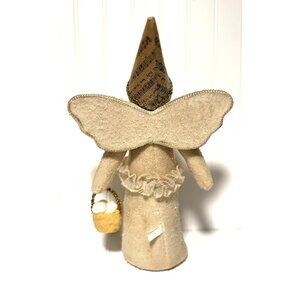 There are 2 festive snowman figures by Dee Foust for Bethany Lowe. This primitive Christmas winter decoration captures the spirit of the season with its quaint design, making it a charming addition to any holiday decor collection. The snowman couple are angels ands are perfect for collectors or those looking to add a touch of rustic charm to their home during the winter months. Folk art.