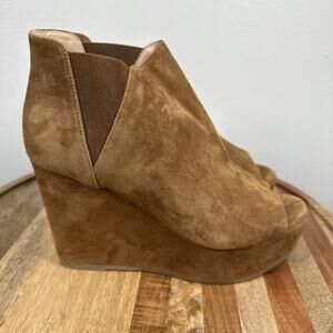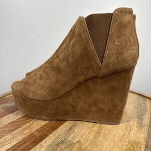 Dee Keller Suede Open Toe Pull On Platform Wedges Caramel Size 38 Italy