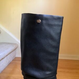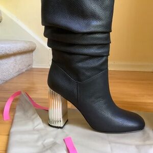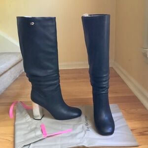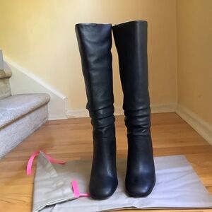 Dee Ocleppo Bethany Scalloped Heel Tall Boot Black Leather SZ 9.5