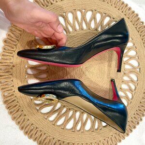 Dee Ocleppo Dee Office Party Logo Pump Black Leather Size EU 38