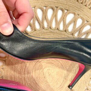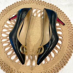 These are gently used Dee Ocleppo Dee Office Party Logo Pump Black Leather Size EU 38. In very good condition. Minor signs of wear to soles and a few minor creasing spots on uppers.