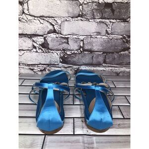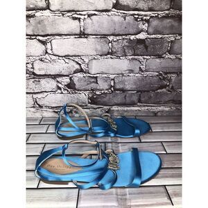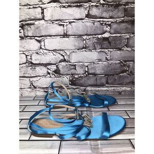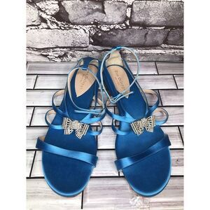 Selling Dee Ocleppo Turquoise Blue Satin Rhinestone Bow AnkleStrap Flat Sandals Women sz 40EU/9.5M US