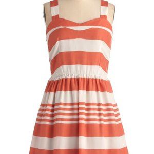 Dee & Ray Peach & Ivory Striped Dress SIZE: EXTRA SMALL