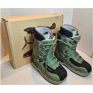 Used once. Deeluxe The Choice NT high-quality all-mountain Snowboard boots with in Green US Men's Size 8 Mondopoint 26. Quantum sole. Legendary Thermo Flex liners, Micro-adjustable Lacing system for explosive action and accuracy. Boot Tongue Concept. for Flex. Original Box. Similar boots online sell for over $300. No smells, marks, rips, tears.