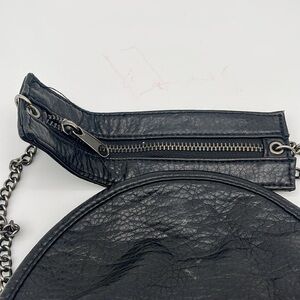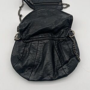 Deena & Ozzy Black Leather Chain Zippered Small Crossbody Bag