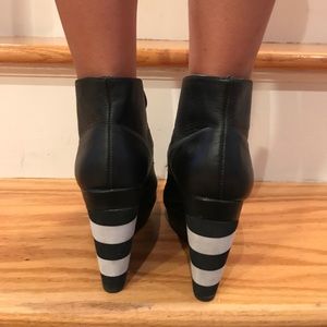 Black ankle high platforms with black and white beetlejuice striped wedge. Unique pair of wedges. Worn once. Not in original box