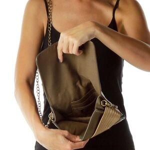 Shop secondhand Deena & Ozzy Crossbody Bags. Condition for this product, 'Gold Two-Tone Metallic Crossbody Bag' is Excellent.