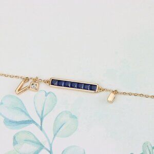 "Deep Blue Crystal Rose Gold Bracelet with Minimalist Charm, XPBL0759
