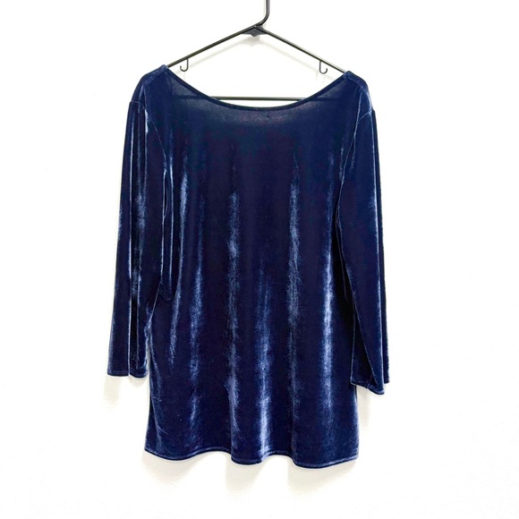 Deep Blue Velvet 3/4 sleeve top scoop back holiday new years XL Banana Republic