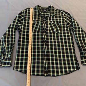 Deep Current Shirt Mens Large Black Blue Plaid Button Down Casual Long Sleeve